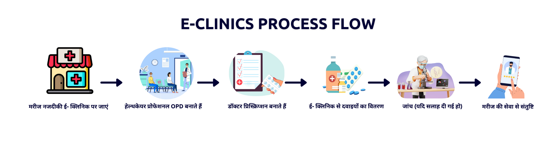 - अपने क्लिनिक में दवाइयाँ और लैब रिपोर्ट प्रदान करें।